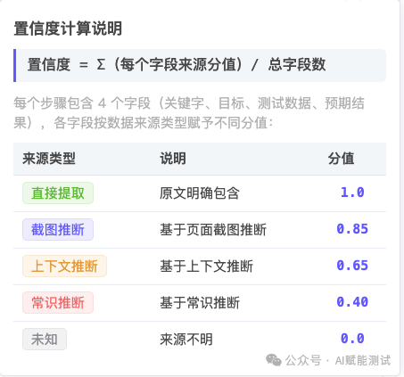 更重要的是,来源标注并不是只给系统看的内部元数据,它还直接参与前端交互。一个真正可用的系统,不该只是默默计算置信度,而应该把这份判断以低成本方式暴露给用户。我们把不同来源类型做成清晰的视觉标签,并在悬浮时展示判断理由,让用户不用逐格猜“这是不是AI脑补的”。高可信字段可以快速略过,低可信字段则天然吸引注意力。