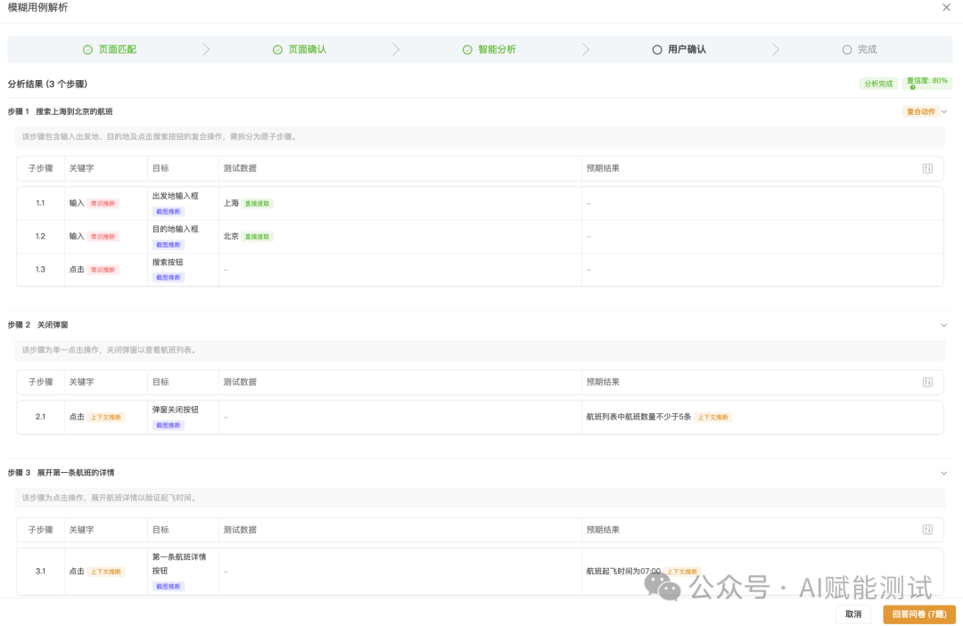 5. 最终确认:用户回答问题后,系统确定性生成结果