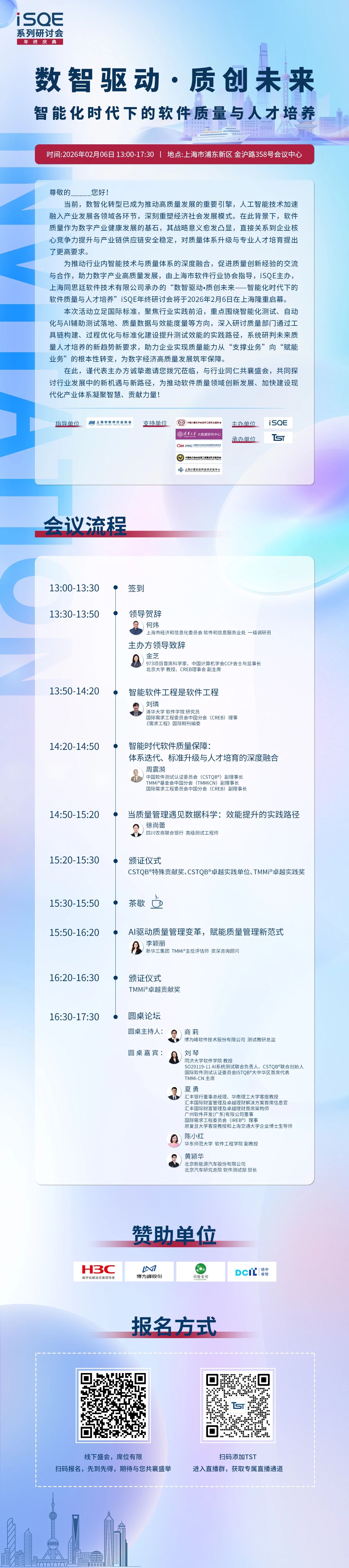 iSQE“数智驱动·质创未来--智能化时代下的软件质量与人才培养”研讨会将于2026年2月6日在上海正式启动,感兴趣的朋友快来报名哦!线下参会名额有限,先到先得。研讨会现场将邀请哪些大咖?有哪些精彩议程?现场有哪些不能错过的Tips?小编将为您逐一揭秘。